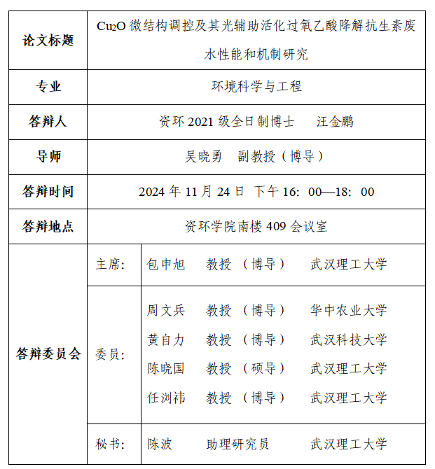 【永利集团88304官网】博士汪金鹏学位论文答辩公告