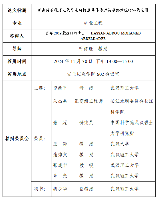【永利集团88304官网】博士HASSAN学位论文答辩公告