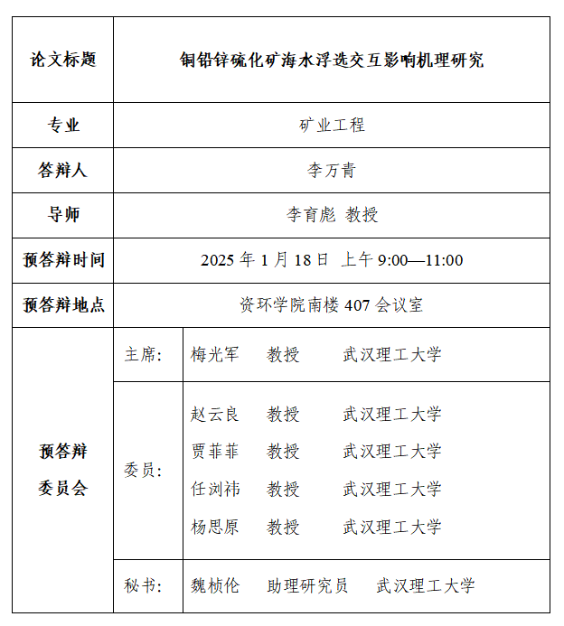 【永利集团88304官网】博士李万青学位论文预答辩公告